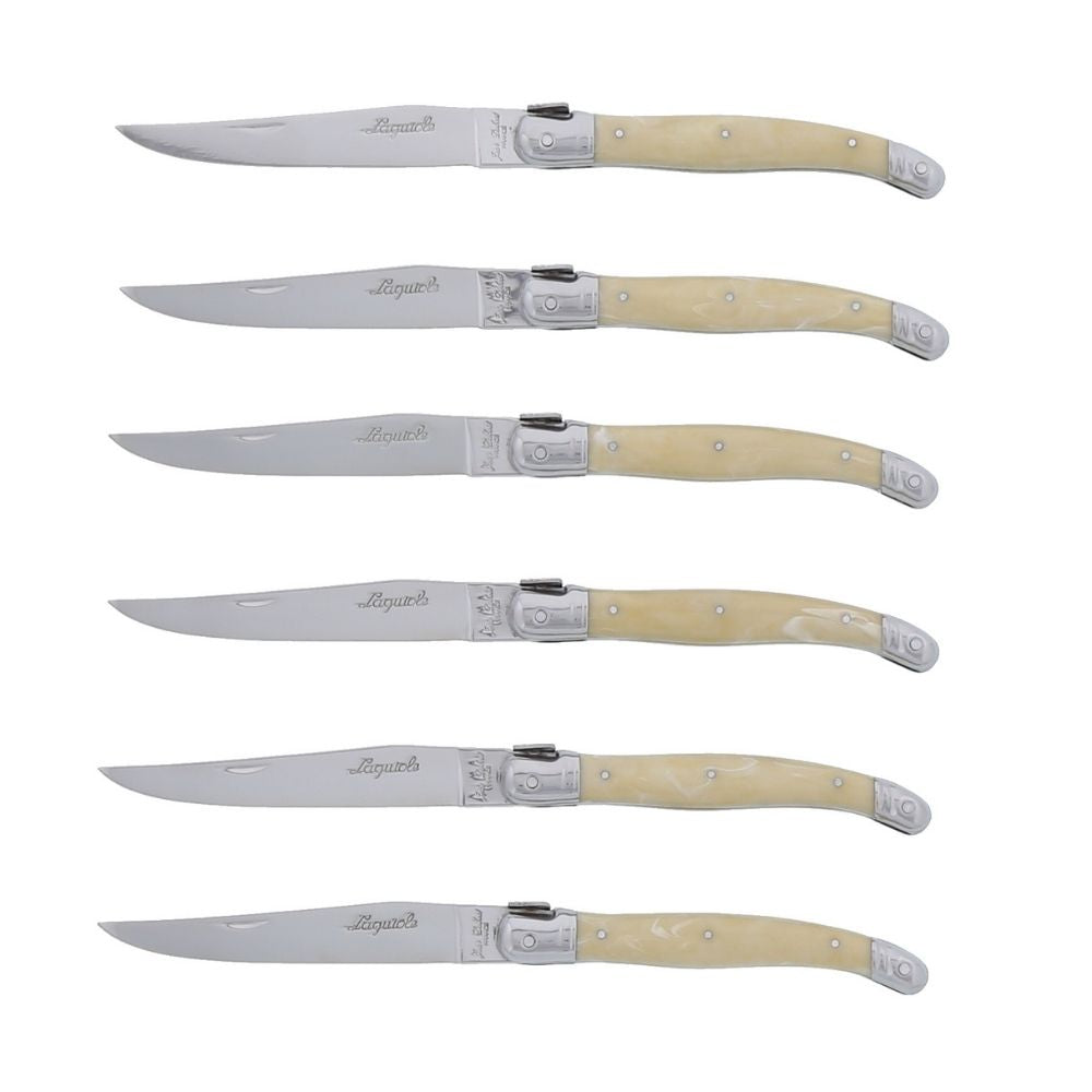 - This set includes 6 steak knives with elegant horn-look ABS handles and stainless steel caps.